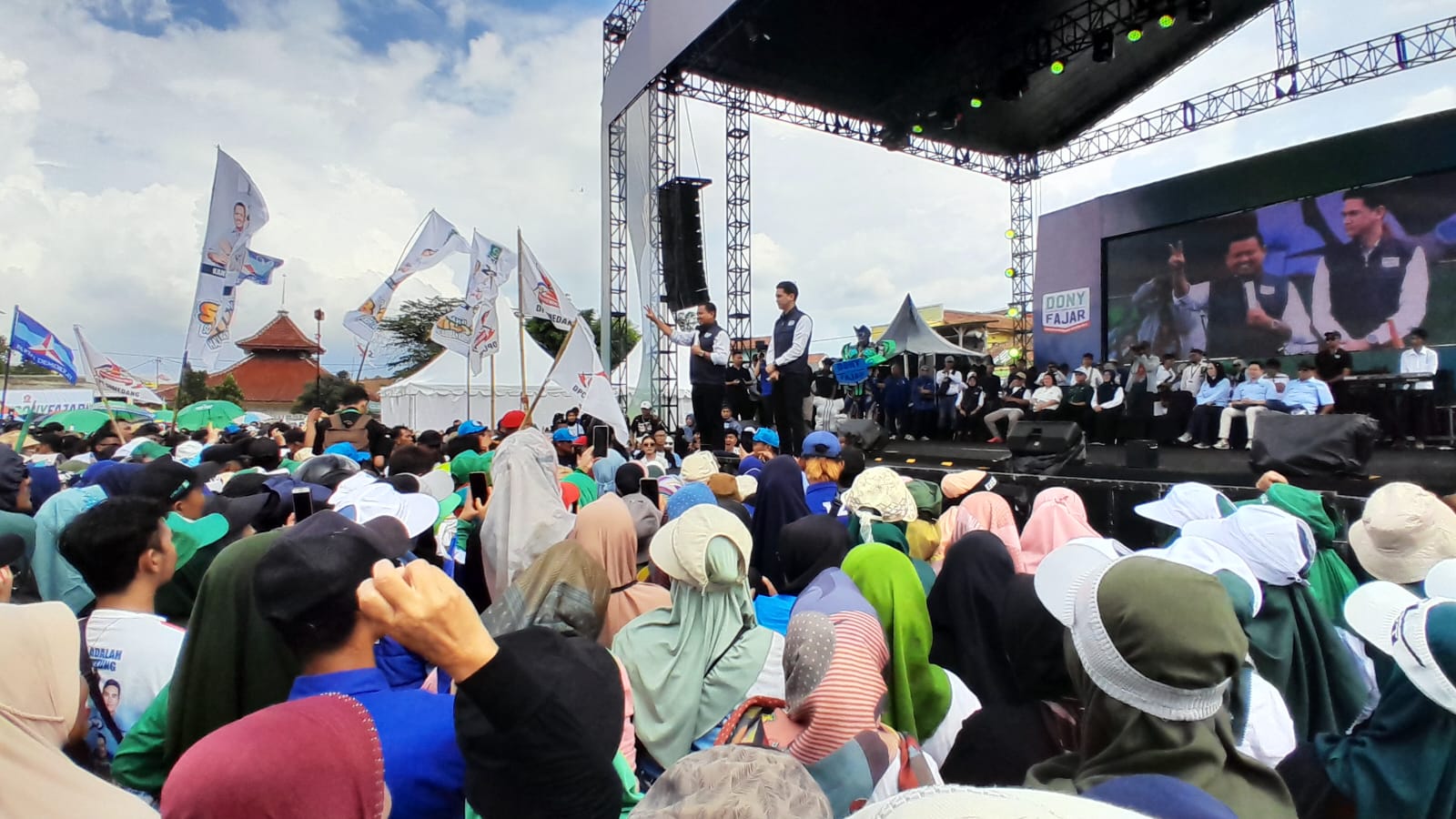 Dony Ahmad Munir menutup orasinya dengan ajakan tulus kepada masyarakat Sumedang untuk memilih pasangan Dony-Fajar demi melanjutkan pembangunan menuju Sumedang yang lebih maju dan sejahtera.