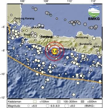 Jakarta, 10 Juni 2025 — Wilayah Pantai Tenggara Kota Pangandaran, Jawa Barat, diguncang gempa tektonik pada Senin malam (9/6) pukul 23.55 WIB. Berdasarkan analisis Badan Meteorologi, Klimatologi, dan Geofisika (BMKG), gempa ini memiliki magnitudo 5,0 dengan pusat gempa terletak di laut, sekitar 49 km arah tenggara Pangandaran, Jawa Barat, pada kedalaman 70 km.